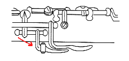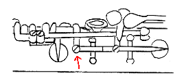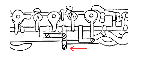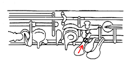 このネジは下管のLow Cキーのネジを併せて調節すると効果的です。(注.LowCキーのネジの項を参照)