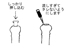 - クロスやハンカチをカップより小さめに丸く切ったものを2mmの厚さになるように何枚か用意します。次に身近にあるビニールの袋(ラップが最適)をカップに入れ、そのままカップを覆うようにビニールの四隅を対角線上に縛ります。後はタンポが手元にある場合と同じです。