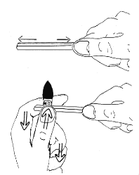 リードを削るために必要なナイフの動きは一方向だけです。手首を回転させるか腕をスライドさせる時に、ナイフを引いたり押したりするとケーンは欠ける確率が高くなります。