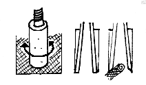 リードをよく湿らせてからじわじわとケーンの中央部分を押さえてリードの開きを極端に小さくします。特にケーンの中央部分を平らにします。この部分が丸くなるとリードの反応が鈍くなり抵抗感が増えます。十分平たくなったら、サイドの先端に近い側を押さえて好みの開きに調節します。