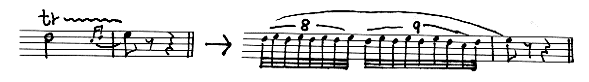 - トリラーは前の拍にまたがっている方法と拍の頭からの方法があります。